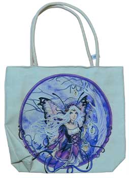 Large jute tote with the image of a beautiful fairy. The design repeats on both sides of this tote bag. Made with durable fabric with rope handle.